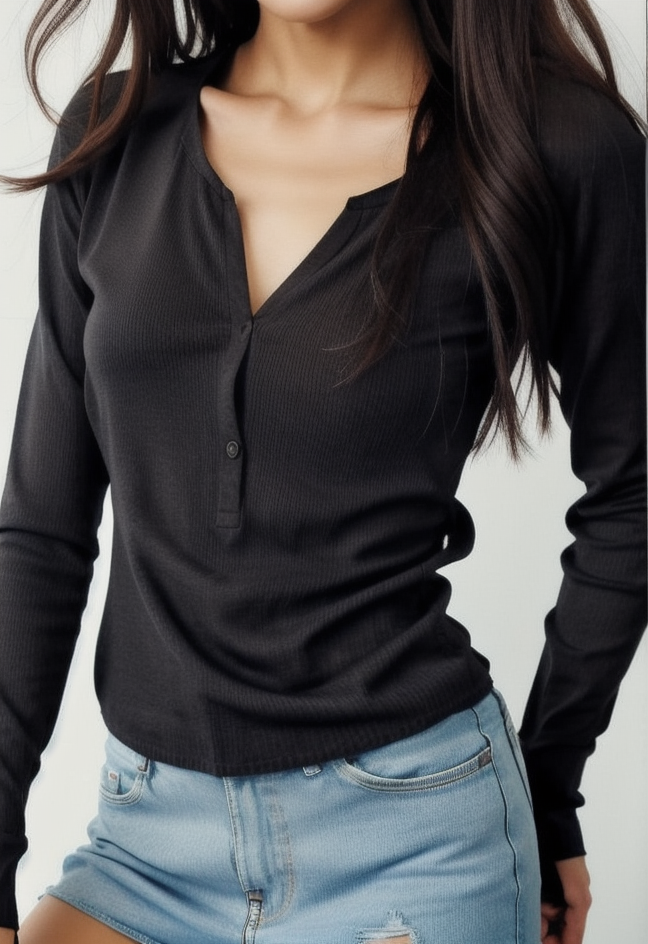 Bell Sleeve Plain Ribbed-Knit Slim-Fit Crop Shirt